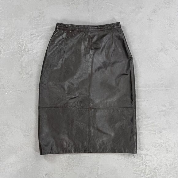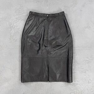 Vintage 1980s Genuine Leather Knee Length Pencil Skirt Fits Size 25 Waist