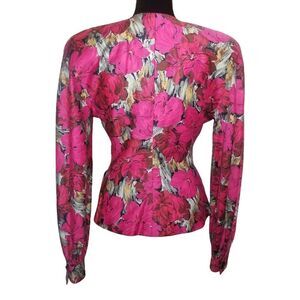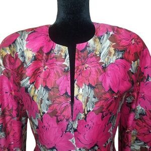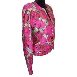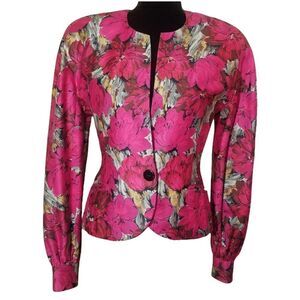 ⭐️ Vintage 1980's Gibson Palermo Shocking Pink Floral Print Silk Jacket sz 8