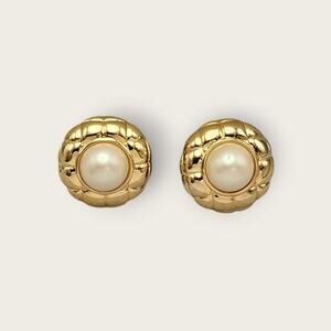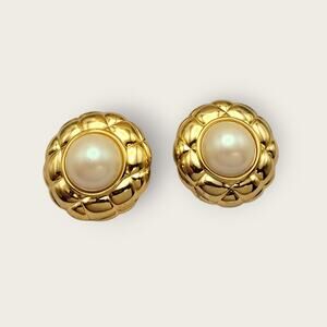 Vintage 1980s Gold Quilted Pearl Clip-On Earrings – Classic Old Money Style
