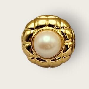 Timeless and elegant, these vintage clip-on earrings feature luminous faux pearls framed in rich gold-tone quilted settings. Their sculpted, dome-like shape evokes vintage couture — reminiscent of classic Chanel-style pieces. Perfect for elevating an evening look or adding refined polish to everyday style.