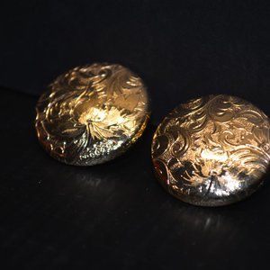 Vintage 1980s Gold Tone Floral Etched Round Button Pierced Earrings