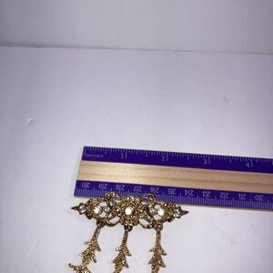 Vintage 1980s Gold Tone Jeweled Elegant Hair Women's Jewelry Dangle Brooch Pin