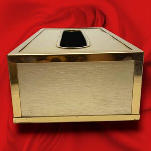 Vintage 1980's Gold Tone Modernist Grid Rectangular Tissue Box Cover Minimalist