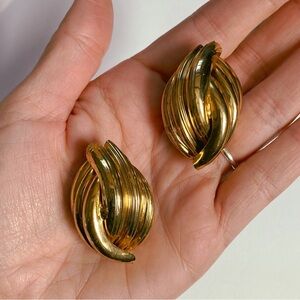 Vintage 1980s Gold Tone Overlapping Ribbed Clip On Earrings