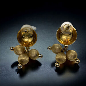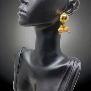 Vintage 1980's Gold Tone Triple Bead Earrings Pierced Couture Runway Modernist