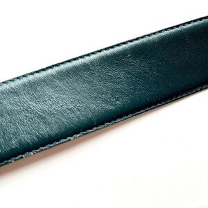 this vintage 1980s Liz Claiborne belt, featuring a luxurious forest green leather strap and a bold geometric gold and silver-tone buckle. Made from full-grain semi-aniline leather, this high-quality accessory exudes timeless sophistication. The wide belt strap and statement buckle design create a polished look perfect for cinching dresses, jackets, or high-waisted trousers. Marked with "Liz Claiborne Accessories," this piece embodies classic 1980s style with a modern touch. A chic and versatile addition to any vintage lover’s collection.