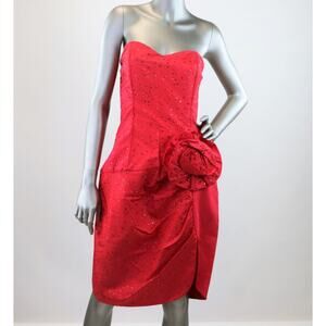 Vintage 1980s Gunne Sax Red Strapless Glitter Dress Medium