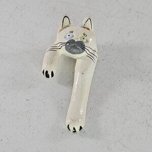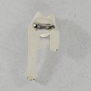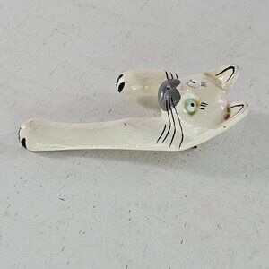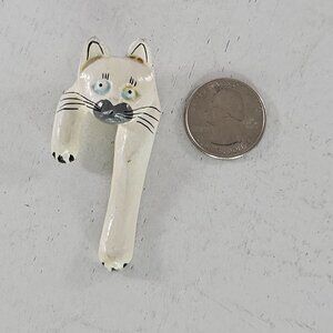 Vintage 1980s Hand Painted Wooden White Cat Brooch Pin *Minor Flaws*
