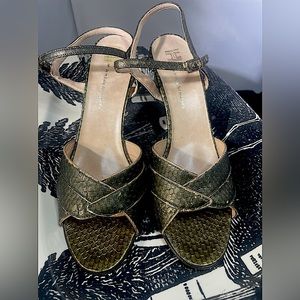 🖤 Vintage 🖤 1980’s 🐍 Higbee’s Green Snakeskin Leather Gold 7 1/2 Strappy 🇮🇹