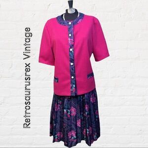 Retrosaurusrex Vintage; vtg; 1980; rockabilly; business casual; office professional; businesswoman; floral; skirt set; suit set; retro