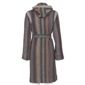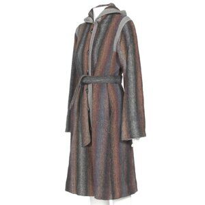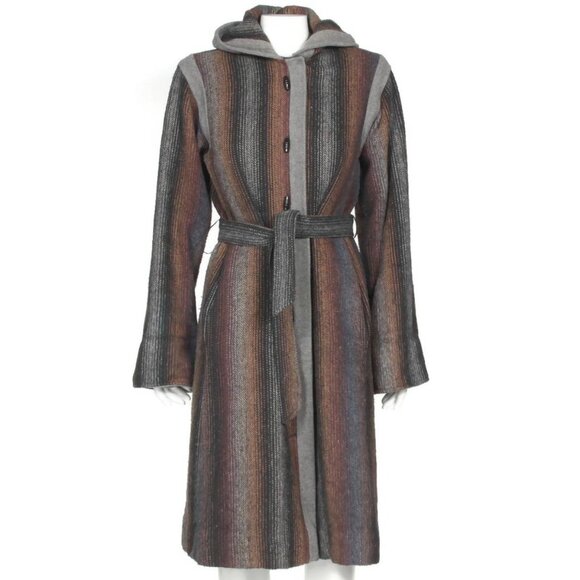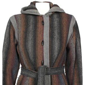Vintage 1980s Hooded Coat Toggle Ombre Striped Wool Belted Jacket Coat sz M /912