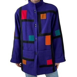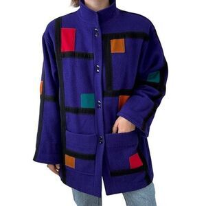 Vintage 1980s International Scene Purple 100% Wool Geometric Retro Chore Coat
