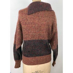 Chain link leather accoutrement on this cowl neck with side split comfy sweater made by La Squadra.