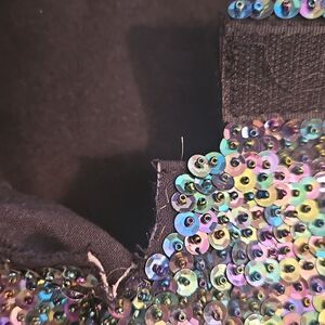 Lights, sequins, action! Step into the spotlight with this vintage 1980s JC sequin masterpiece. This sculpted showgirl-style hat is drenched in shimmering iridescent sequins that shift with every move—perfect for commanding the stage, strutting in a Pride parade, or dazzling at a costume ball. Think drag royalty, disco diva, or cabaret queen. Vintage wear adds to its story and character. Made in the USA and made for a moment.