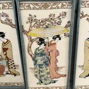 This vintage 1980s Japanese antique needlepoint framed wall art is a stunning piece that will add a touch of elegance to any room. Hand-stitched with intricate detail, this piece showcases the beautiful culture of Japan. The provenance of this item is available, making it a unique addition to any collection.