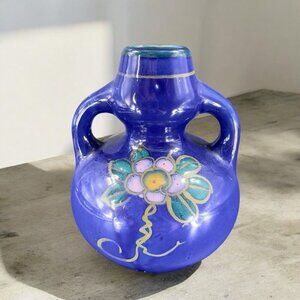Vintage 1980s Japanese Porcelain Double Handle Vase Vessel Hand Made In Japan