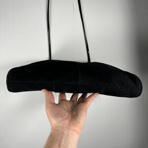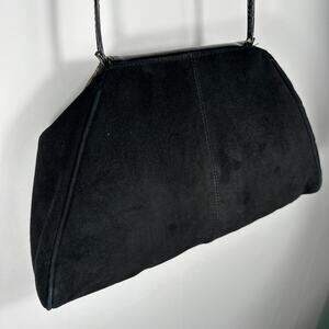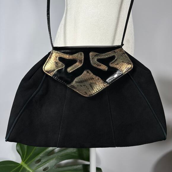 Vintage 1980s Jasmin Hong Kong Suede Snakeskin Leather Shoulder Bag Black Gold
