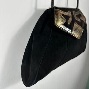 Vintage Jasmin Hong Kong Suede & Snakeskin Leather Shoulder Bag Black Gold