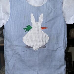 Vintage 1980s Jon Jon Nursery Rhyme Bunny Romper Set Easter Overalls appliqué