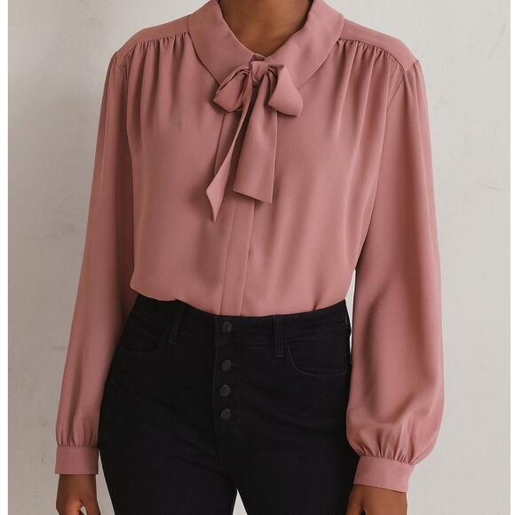 Vintage 1980s Josephine Rose Pink Tie Neck Blouse Xl 16