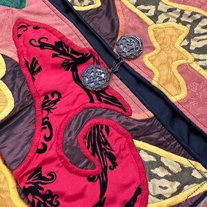 Vintage 1980s patchwork jacket by Mexican designer Judith Roberto, known for her "art to wear" textile creation