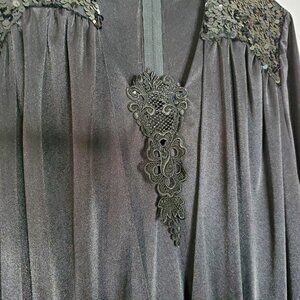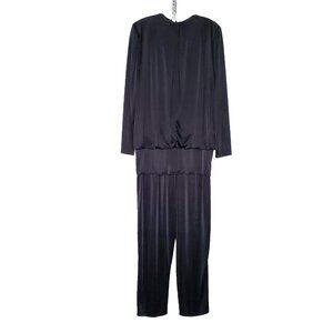Vintage 1980s Jumpsuit Romper Sz 8 Black Satin Sequins Lace Party Disco