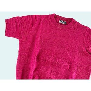 Vintage 1980s KENETH TOO! Pink Short Sleeve Patterned Sweater Size Small