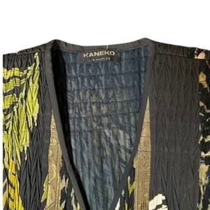 keywords: vintage, 1980s, Kaneko Los Angeles, art-to-wear, boho, bohemian, kimono, wearable art, avant-garde, lagenlook, ethnic jacket, gallery fashion, statement coat, heart clasp, metallic