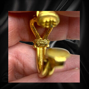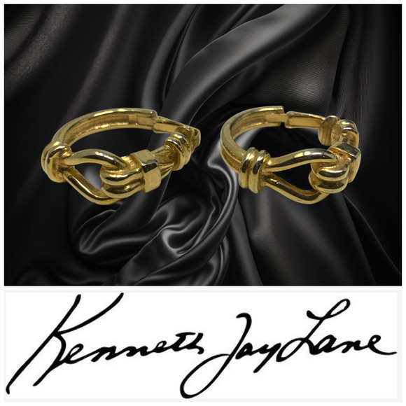 Vintage 1980's Kenneth Jay Lane Knot Hoop Gold Tone Leverback Earrings Modernist