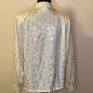 Vintage 1980s Koret Career White Button Up Blouse with Sateen Paisley