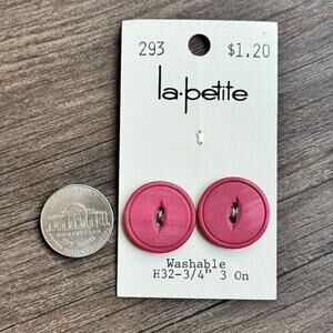 Vintage 1980s La Petite Hot Pink 2 Hole Flat Buttons 3/4" Set of 2 Washable