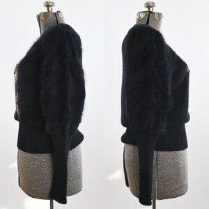 Vintage 1980s Large Black Sequin Leg of Mutton Sweater Details: