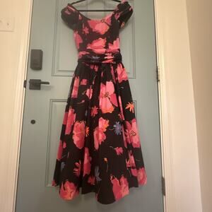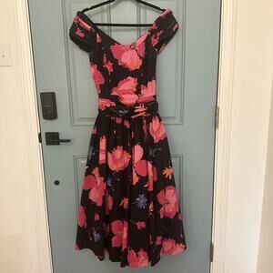 Vintage 1980s Laura Ashley Great Britain Black Pink Floral Dress Full Skirt 8
