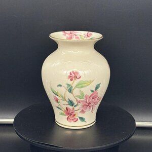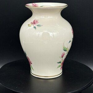Vintage 1980's Lenox Barrington Collection Flared Ivory and Pink Floral 24K Gold Trim Vase. Excellent unused condition. This is a beautiful piece.
