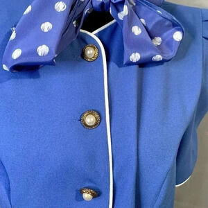 Vintage 1980’s Leslie Faye 3 Piece Set Sky Blue With Polka Dot Pleated Skirt