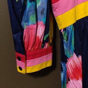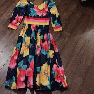 Vintage 1980's Leslie Lucks Floral Midi Navy Blue Dress SIZE 12