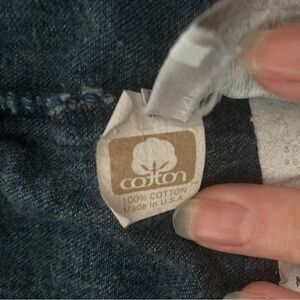 100% cotton. Deadstock. Vintage size 14. Fits like a modern 10. Waist is really stretchy.