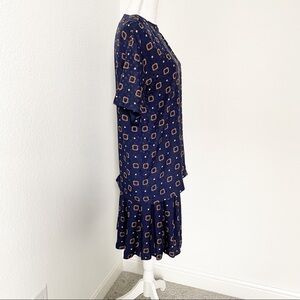 Vintage 1980s Maggy London Silk 2 Piece Blouse & Skirt Set Blue Gold Size 8