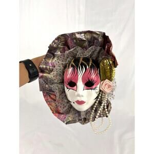 Vintage 1980s Mardi Gras Wall Mask 8" Pink Style Wall Hanging Decor Fabric