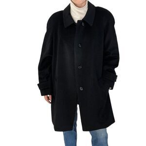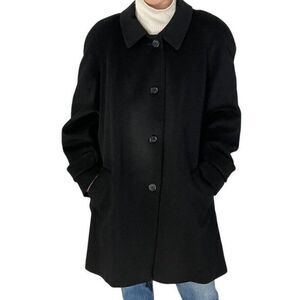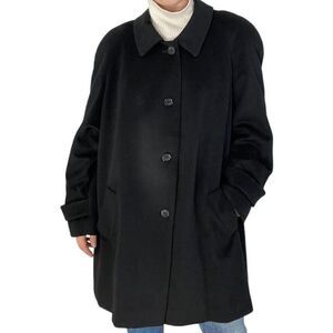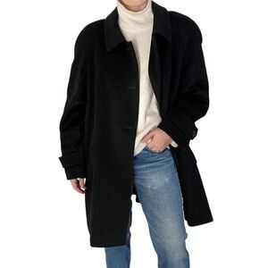 Vintage 1980s Marvin Richards 100% Cashmere Black Mid Length Trench Coat Sz L