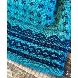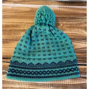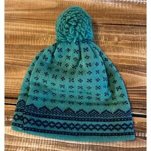Vintage 1980's Maureen of the Mews Knitted Winter Ski Hat Beenie Green Pom Pom