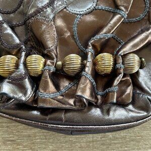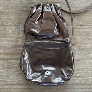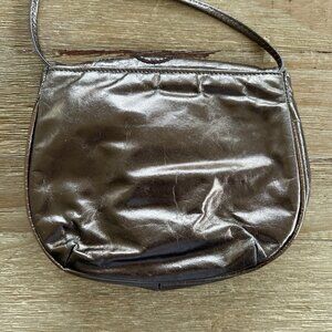 Vintage 1980s Metallic Bronze Copper Leather Patchwork Flap Purse Shoulder Bag
