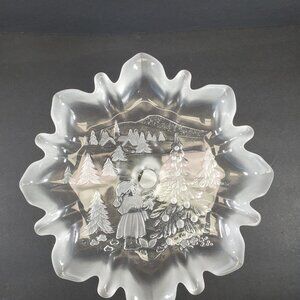 Vintage 1980s Mikasa Christmas Story Footed Bon Bon, Frosted Glass, Germany