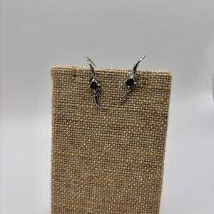 Vintage 1980's Minimalist Silver Earrings with Onyx