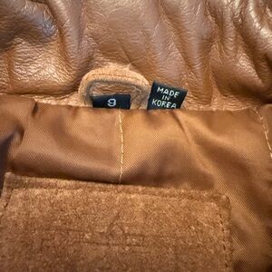 Vintage 1980’s Mixed Blues Leather & Suede Bomber jacket Tan Size 9. In excellent condition.