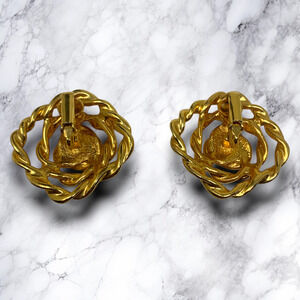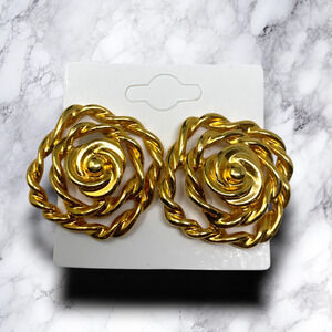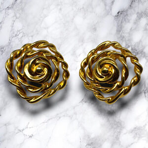 Vintage 1980's Modernist Gold Tone Twisted Rope Earrings Clip On Couture Runway