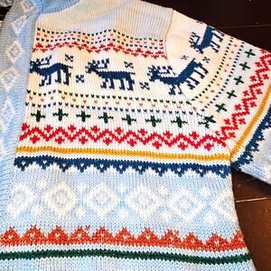 Vintage 1980s Monarch Knits Hooded Cardigan Sweater Winter Reindeer Medium