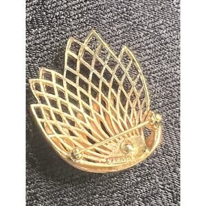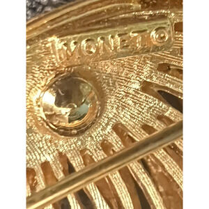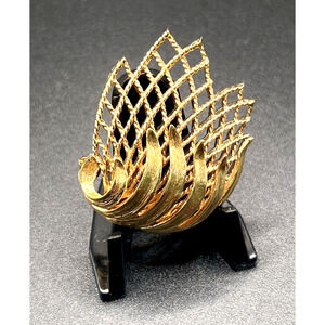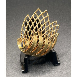 Vintage 1980s Monet Gold Brass Plated Lattice & Swirl 2D Design Brooch Pin