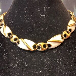 Vintage 1980’s Monet Gold & Cream Enamel Necklace Classic Design