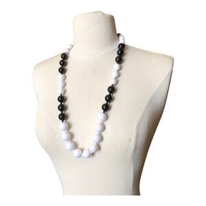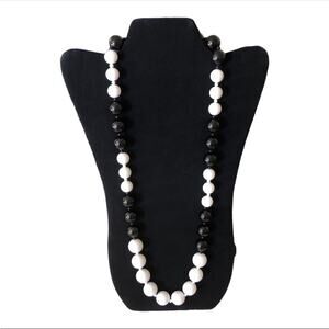 Vintage 70’s Monet Black&White Beaded Lucite Necklace 36in.